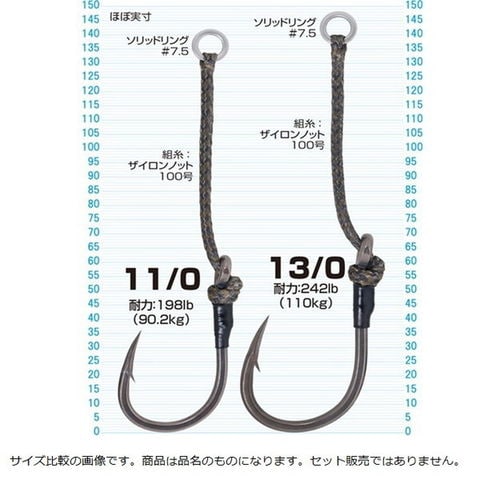 ツナ専用フックを1からデザイン。特に大型マグロとなると口腔構造や肉付きの硬さ、厚さが異常に発達します。硬い骨にも刺さり込む貫通性能と長時間のファイトにも耐える高強度。専用フックなくして攻略できるターゲットでないことは対峙した釣り人なら判るはずです。必要にして十分な強度を有しますサイズ:11/0