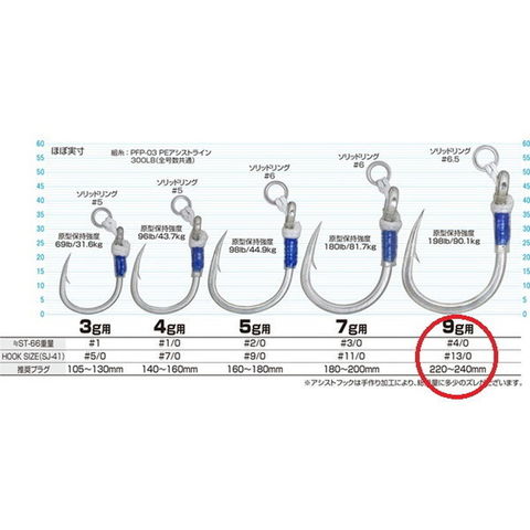 ●105mm~240mmのプラグに合わせやすく、タックルクラスもPE4~8号と使用頻度の高いモデル。●EXショート設計でルアーへの抱き付きやフッキングミスを抑えます。●大時化のラフウォーター、ロックショアのズリ上げなどに効果的です。サイズ:9g用 #13/0