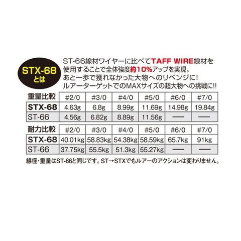 深化するタフワイヤー超絶剛力クラス!PE時代になって久しい。時代の要望に、私たちはついていきたい。フックは魚との唯一の接点。生命線だ。ヒラスズキや、ショア青物師など、あえて孤高のアングラーが多用するクラスから投入を決めたSTX-58クラス。その堅実な仕事ぶりでの確信。66の時代は過去になる。ハリが変われば釣果は変わる。