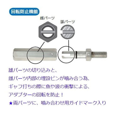 フライングギャフシステム専用アダプター。タモの柄に負担をかけず、安全に大物を取り込める4分ネジ専用フライングギャフアダプターです。