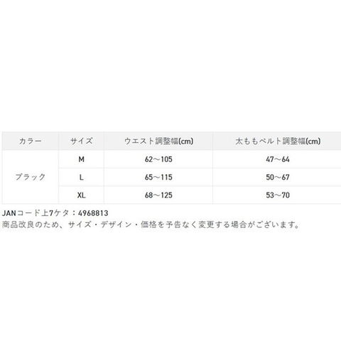 素材:(表地)ポリエステル100%(ポリウレタンコーティング加工)・(裏地)ポリエステル100%、(太ももベルト)クロロプレン100%