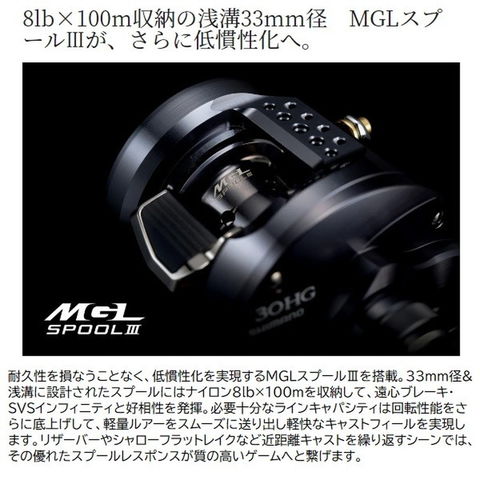 質実剛健に狙い撃つ。質実剛健な魅力から支持を集め続けているカルカッタコンクエスト。カルカッタコンクエストシャローエディションは、ナイロン8lb-100mキャパシティ、33/19mmMGLスプール3のシャロースプールを搭載。新たに搭載されたスプールはSVSインフィニティとの相性に優れ、特に軽量ルアーでピンポイントを撃ち抜く際のフィーリングはカルカッタコンクエストの質感の高さをさらに引き出します。インフィニティドライブとマイクロモジュールギア搭載による圧倒的な巻き上げ性能はもちろん健在。テクニカルなバスフィッシングゲームを極める釣り人に送る1台です。