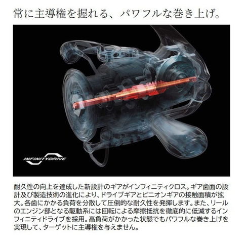 ライトソルトを意のままに。ソアレ XRは、マグナムライトローターがもたらす軽快な操作性と高い感度で、小さなアタリを感じやすい滑らかな巻き心地が特徴。インフィニティドライブの搭載でパワフルな回転性能を持ち、さらにトルクフルなロングハンドルを採用。ギアはインフィニティクロスの搭載で耐久性がいっそう向上しています。ライトラインに適した糸巻量と、ドラグには滑り出しが軽いハイレスポンスドラグを採用。魚が勢いよく走っても細いラインが切れるリスクを低減します。アンチツイストフィンはラインのたるみが発生してもラインローラーからのライン落ちを低減。自重135gのジグ単スーパーフィネスモデル500SPGからパワーフィネスモデルC2500SHGまで計4アイテム。ソアレ XRは軽量ルアーを扱うライトソルトゲームにおいて、状況把握をより一層求めるアングラーをサポートします。重量(g):135
