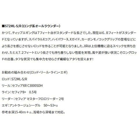 シマノ エギングロッド セフィア XR ティップエギング S72ML-S/R (スピニング 2ピース)
