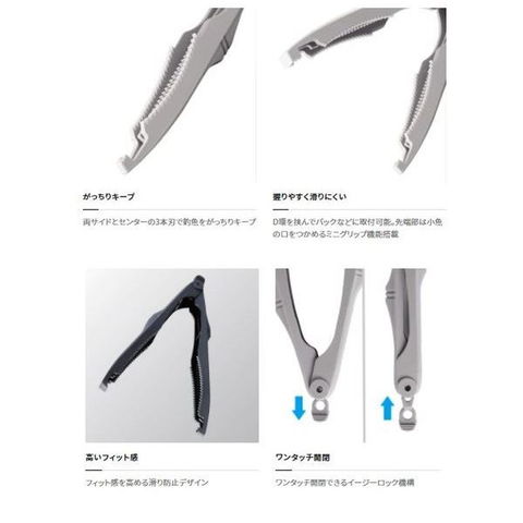●両サイドとセンターの3本刃で釣魚をがっちりキープ●D環を挟んでバックなどに取付可能●先端部は小魚の口をつかめるミニグリップ機能搭載●フィット感を高める滑り防止デザイン●ワンタッチ開閉できるイージーロック機構●刃が重なりコンパクトに収納可能 ★ 素材: ガラス強化ナイロン 全長:150mm カラー:カーキ ※実物と色が違って見える場合があります。あらかじめご了承下さい。