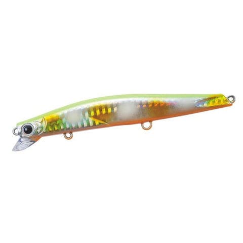 自重:15g サイズ:125mm ゴッツアンミノー125Fは12cmクラスのリップ付きフローティングミノーでありながら、横方向への抜けるようなダートアクションでバイトを誘います。それはまるで土俵際に追いやられた力士が最後の力を振り絞り、攻勢をかける「うっちゃり」のごとく、シーバスに食われまいと左右へ逃げ惑うベイトフィッシュを演出する「スーパーうっちゃりダート」が必殺技です。ただ巻きでは80~100cmまで潜り、安定したウォブリングアクションで河川や干潟、サーフを攻めきります。また連続してジャークを繰り返すことでレンジを上げながら引いてくることもできます。リップの付いたミノーの水絡みの良さ、立ち上がりの良さと、リップレスミノーの抜けるようなダート性能をあわせ持った、ごっつぁんシリーズ第一弾となるミノーです。その日の決まり手はあなた次第。いろんな技を駆使して横綱級を狙ってみてください。※掲載している商品の画像は代表画像を表示しています。また実物と色が違って見える場合があります。あらかじめご了承下さい。