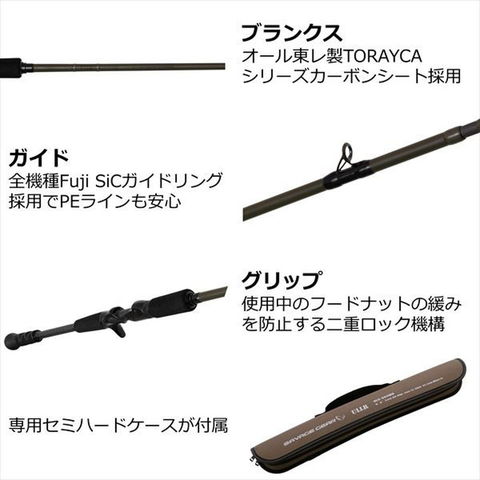 北欧より狩猟の神ULLR降臨!日本人が世界中のSAVAGEなターゲットと戦うためのJAPANオリジナル規格!オール東レ製TORAYCAシリーズカーボンシート採用。全機種Fuji SiCガイドリング採用でPEラインも安心。全ガイドをFujiステンレスダブルフッドフレーム採用。ダブルラッピング仕様でモンスターハントスペック。使用中のフードナットの緩みを防止する二重ロック機構。専用セミハードケースが付属。 ★ 全長:198.0cm