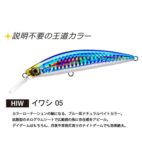 重量:16g リング:#3 フック:#6 飛距離:60m ★ 低速から高速リトリーブまで幅広く対応 重量級ぶっ飛びミノー!青物、サゴシ、ヒラメ、マゴチに最適。圧倒的な飛距離で、通常のミノーでは届かないエリアを攻略。強波動のウォブンロールアクションで広範囲の魚にアピール。※掲載している商品の画像は代表画像を表示しています。また実物と色が違って見える場合があります。あらかじめご了承下さい。