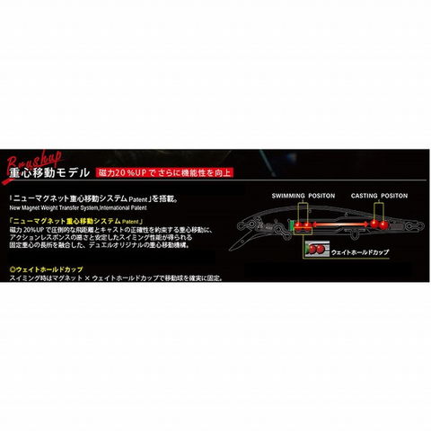 Size:130mm Weight:20.5g Ring:#3 Hook:#4 Distance:Max40m Range:1.5m ニューマグネット重心移動システム ★ ◆色調変化と光の明滅を発生させるフルフラットサイドボディ
