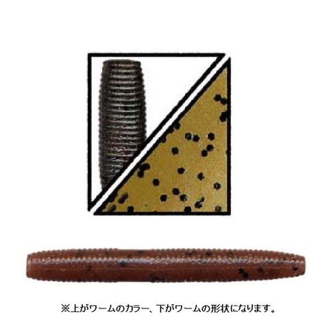 バスのサイズや水の透明度、フィッシングプレッシャーやバスのコンディション、ベイトのサイズなどで使い分けていくとよいでしょう。ヤマセンコーはノーシンカーを最も得意としますが、テキサスリグで使用すると、ヤマセンコーでなければ入っていかないカバーが多く存在します。こういったポイントでは最後の切り札となるでしょう。また、キャロライナリグでも有効で、琵琶湖などのビッグレイクでは、岸からの遠投スタイルでも高い実績があります。フリーリグにおいても、水平フォールするヤマセンコーは相性抜群です。フリーにフォールさせてからボトムを這う姿にバスは反応してくれるでしょう。オフセットフックをセットしてノーシンカーで使うとき、軽いネイルシンカーをフックの逆側へセットしてやると、バックスライドリグとしても使えます ★ 入数:10本 ※画像のワームは形状になります。カラー表示画像がワームのカラーになります。 ※実物と色が違って見える場合があります。あらかじめご了承下さい。