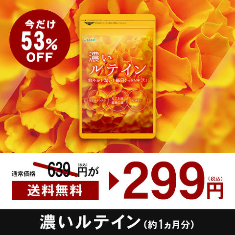 送料無料 特価 53%引 2026年の健やか かさかさ対策セール 【乾燥厳しい冬の必需サプリ★ゼアキサンチン+4つのビタミンも配合】濃いルテイン サプリ お試し約 1ヵ月分 ¥299 通常639円 ギフトにも最適【お一人様12ヶ迄】