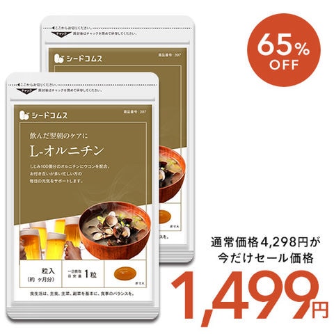 送料無料 特価 セール 65%引 しじみ100個分のオルニチン+ウコンエキスをギュっと一粒に 元気を助ける L-オルニチン サプリ 実感 約6ヵ月分 ¥1499 通常4298円 ギフトにも最適【お一人様5ヶ迄】