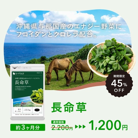 送料無料 特価 2026年の健やかセール 45%引【長寿国与那国島の長寿ハーブをサプリでお手軽に★体感6か月分】クロレラ+モズク配合 美容 健康 元気 長命草(フコイダン・クロレラ入) サプリ約3ヵ月分 ¥1200 通常¥2200 ギフトにも最適 【お一人様5ケまで】