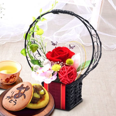 和風プリザ・花籠&どら焼きセット 和風プリザ・マダムポット&どら焼きセット |