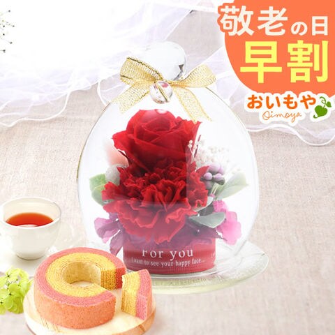 \数量限定!/ 誕生日 プレゼント お祝い 贈り物 ギフト お菓子 スイーツ 花 プリザーブドフラワー ガラスドームプリザM【赤】スイーツセット gifta ※ご指定日にお届け