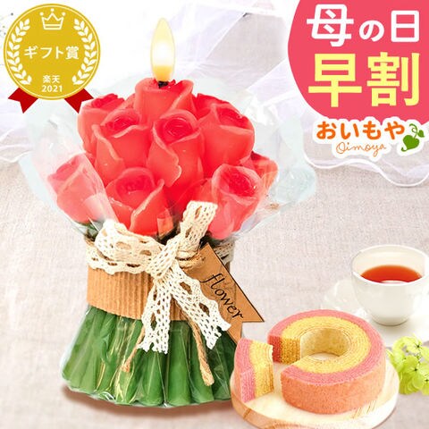 \今だけ超早割!/ 母の日 ギフト プレゼント お菓子 スイーツ 花 プリザーブドフラワー キャンドルライト【赤】 スイーツセット gifta ◆母の日◆ 母の日WEEK5月4日~10日お届け※ご指定不可
