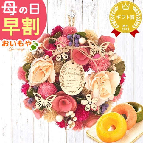 \今だけ超早割!/ 母の日 プレゼント ギフト 花 雑貨 リース ドーナツ【ハッピーフルール】 スイーツセット 送料無料 ◆母の日◆ 母の日WEEK5月4日~10日お届け※ご指定不可