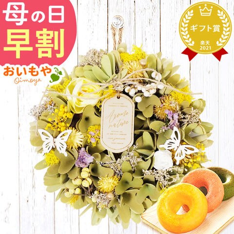 \今だけ超早割!/ 母の日 プレゼント ギフト 花 雑貨 リース ドーナツ【プランタングリーン】 スイーツセット 送料無料 ◆母の日◆ 母の日WEEK5月4日~10日お届け※ご指定不可
