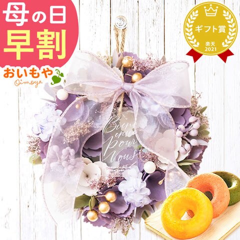 \今だけ超早割!/ 母の日 プレゼント ギフト 花 雑貨 リース ドーナツ【トワイライト・モーヴ】 スイーツセット 送料無料 ◆母の日◆ 母の日WEEK5月4日~10日お届け※ご指定不可