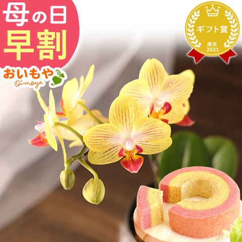 \今だけ超早割!/ 母の日 プレゼント花 ギフト 鉢植え 胡蝶蘭と苺バウム スイーツ【ゴールドベイビー】 ◆母の日◆ 母の日WEEK5月4日~10日お届け※ご指定不可