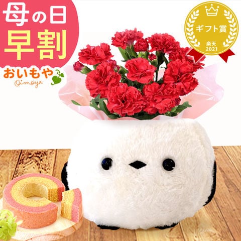 \今だけ超早割!/ 母の日 ギフト プレゼント 花 鉢植え 鉢花 カーネーション 【シマエナガ×カーネ【赤】】 スイーツセット 送料無料 ◆母の日◆ 母の日WEEK5月4日~10日お届け※ご指定不可