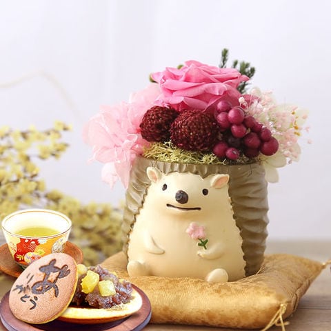\数量限定!/ 誕生日 プレゼント 贈り物 お菓子 誕生日プレゼント 花 ギフト プリザーブドフラワー 一寸 ハリネズミ 和菓子セット issunA 送料無料 ※ご指定日にお届け