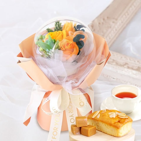 ◆シャボンフラワー…1個 ◆ミニパウンドケーキ…1個 (スイートポテトキャラメル味) ◆静岡紅茶(2g)…1袋 |