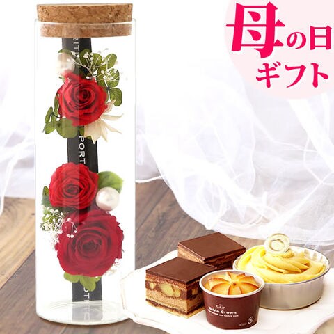 | 商品名 | ガラスローズプリザーブドフラワーとスイーツギフト |