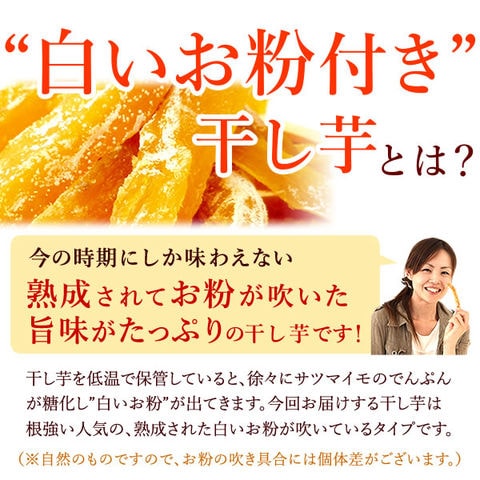 ほしいもは添加物を一切使用せずに、サツマイモ本来の甘さ、柔らかさを引き出して製造する自然商品です。 お買い求めいただき、味に若干のばらつきがある場合がございます。 何卒、ご理解の程お願い申し上げます。 |