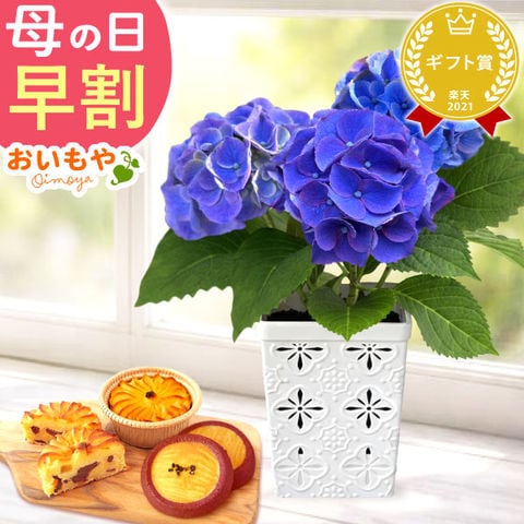 \今だけ早割!/ 母の日 ギフト プレゼント 花 鉢植え 選べるあじさい スイーツ 鉢植え【ブルー・タイニーブルー】 3.5号鉢 林檎スイートポテト&サブレセット ◆母の日◆ 母の日WEEK5月4日~10日お届け※ご指定不可