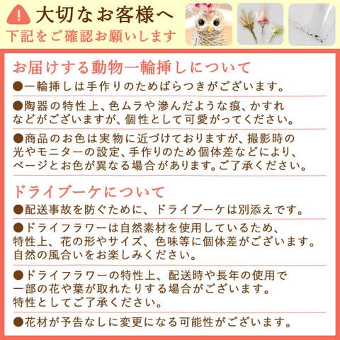 | 商品名 | ドライブーケ付き 選べるかわいい動物一輪挿し陶器+スイーツセット |