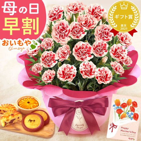 \今だけ超早割!/ 母の日 ギフト プレゼント 花 カーネーション 選べるスイーツセット 【イチゴホイップ】+林檎ポテトとサブレ ◆母の日◆ 母の日WEEK5月4日~10日お届け※ご指定不可