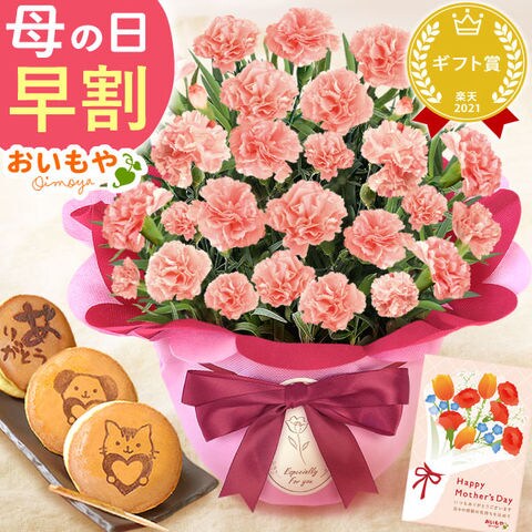 \今だけ超早割!/ 母の日 ギフト プレゼント 花 カーネーション 選べるスイーツセット 【メープルシフォン】+どらやき3個 ◆母の日◆ 母の日WEEK5月4日~10日お届け※ご指定不可