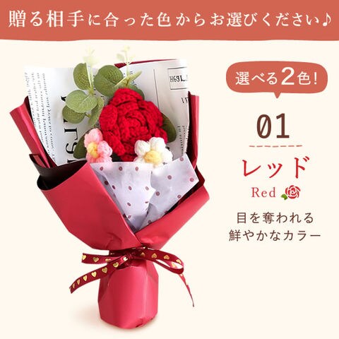 \数量限定!/ 誕生日 プレゼント お祝い 贈り物 ギフト 雑貨 選べるニットフラワー&生花カーネーションブーケ【ニットフラワーブーケ・レッド】 ※ご指定日にお届け!