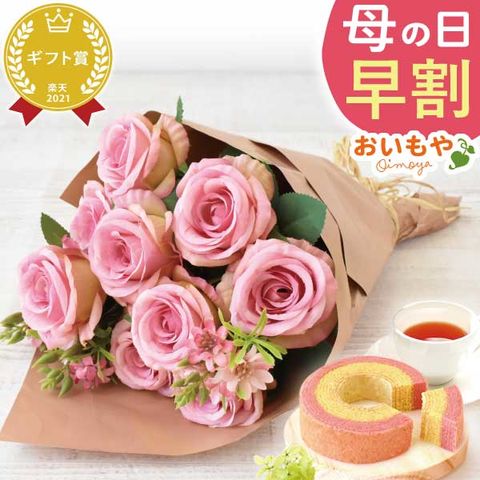 \今だけ早割!/ 母の日 ギフト プレゼント お菓子 スイーツ 花 プリザーブドフラワー ブーケ【ブロッサムピンク】 スイーツセット バウムクーヘン ◆母の日◆ 母の日WEEK5月4日~10日お届け※ご指定不可