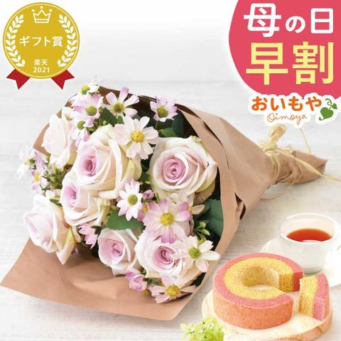 \今だけ早割!/ 母の日 ギフト プレゼント お菓子 スイーツ 花 プリザーブドフラワー ブーケ【フェアリーピンク】 スイーツセット バウムクーヘン ◆母の日◆ 母の日WEEK5月4日~10日お届け※ご指定不可