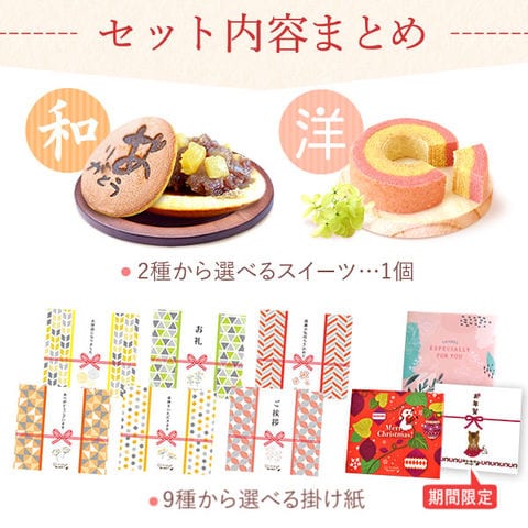 | 名称 | 選べるスイーツプチギフト (ありがとうどら焼きor苺バウムクーヘン) |