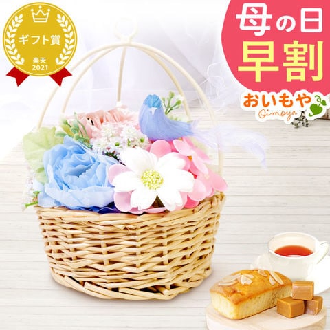 \今だけ早割!/ 母の日 ギフト プレゼント お菓子 スイーツ シャボンフラワー【小鳥バスケット・ブルー】 スイーツセット パウンドケーキ ◆母の日◆ 母の日WEEK5月4日~10日お届け※ご指定不可