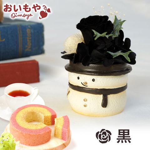 雪だるま プレゼント ギフト 花 プリザーブドフラワー【黒】 スイーツセット snowman ご指定OK