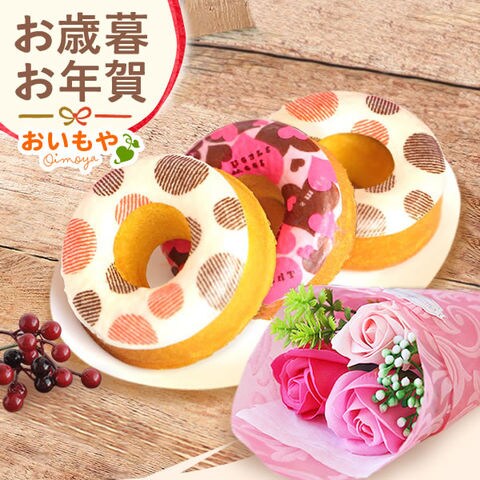\ご指定日にお届け!/ お歳暮 御歳暮 ギフト お菓子 スイーツ 選べるおいもスイーツ+フラワー 【チョコドーナツ+フラワー<ピンク>】 スイーツセット 送料無料 ◆お歳暮◆ ※ご指定OK!