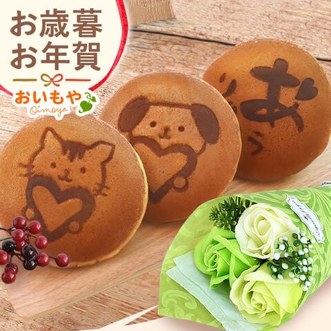 \ご指定日にお届け!/ お歳暮 御歳暮 ギフト お菓子 スイーツ 選べるおいもスイーツ+フラワー 【どら焼き3個+フラワー<グリーン>】 スイーツセット 送料無料 ◆お歳暮◆ ※ご指定OK!