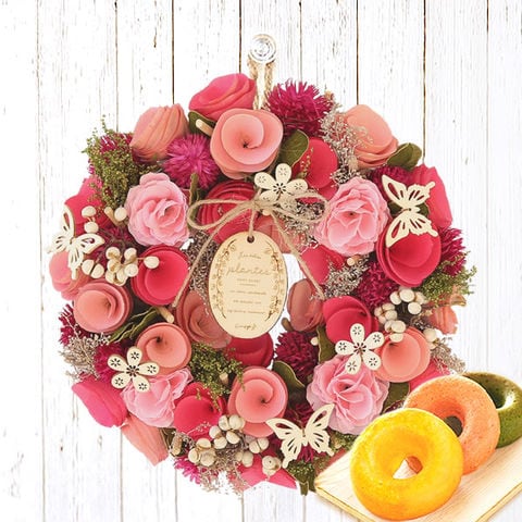 ○選べるナチュラルリースBタイプ 1個 ○焼きドーナツ 3個 (スイートポテト味1個・ストロベリー味1個・抹茶味1個) |