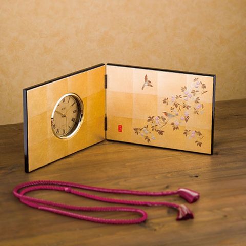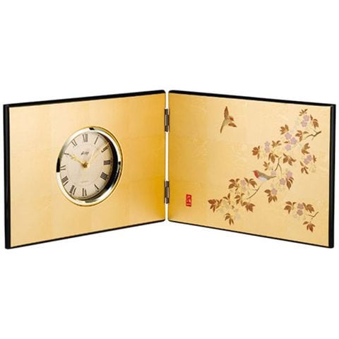 箔一 花見鳥 屏風時計 (30×22.5×1.2cm屏風時計1個・MDF金沢箔・単3電池1本付) 日本製 4034-021 【同梱不可】[▲][AS]