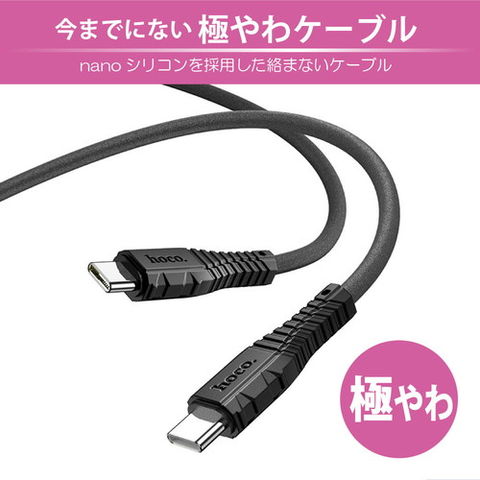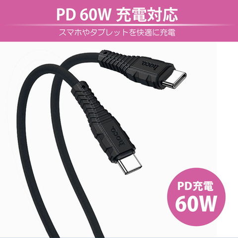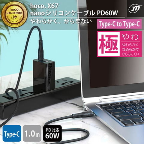 JTT hoco X67 nanoシリコンケーブル PD60W Type-C to Type-C ホワイト X67-NANOSTT-WH 【同梱不可】[▲][AS]