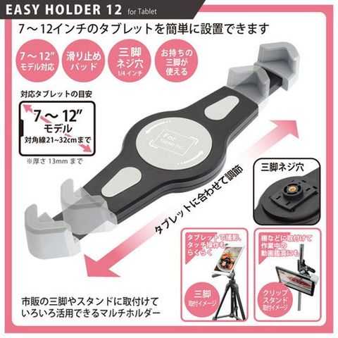 7~12インチクラスのタブレットの対角を固定するシンプルなタブレットホルダーです。