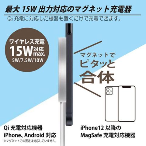 対応機器 : MagSafe充電に対応したiPhone、ワイヤレス充電に対応したiPhone、Androidスマートフォン