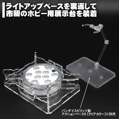 さらに本製品は上下を裏返すことで、別売のプラモデル用展示ベース「アクションベース6」を上部に載せてライトアップ展示が可能!