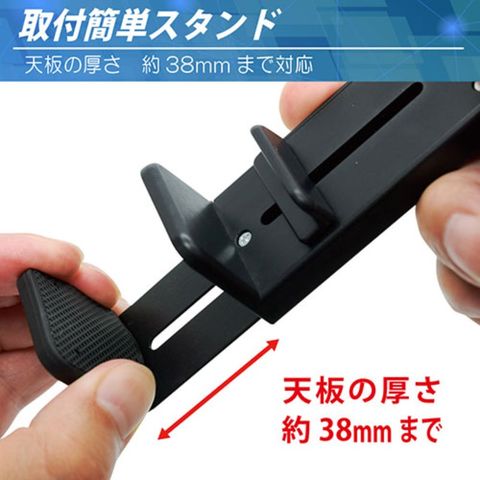 38mmまでの開閉が可能なクランプにより、座席に備え付けのテーブル等に固定することができます。