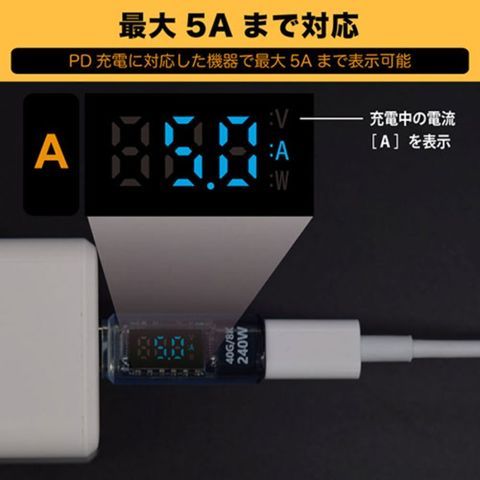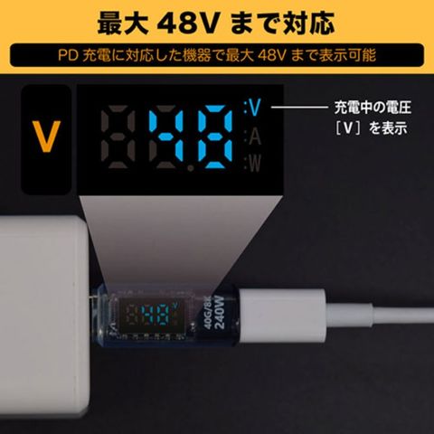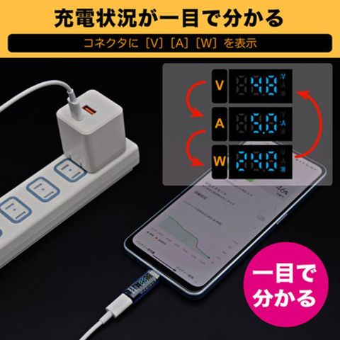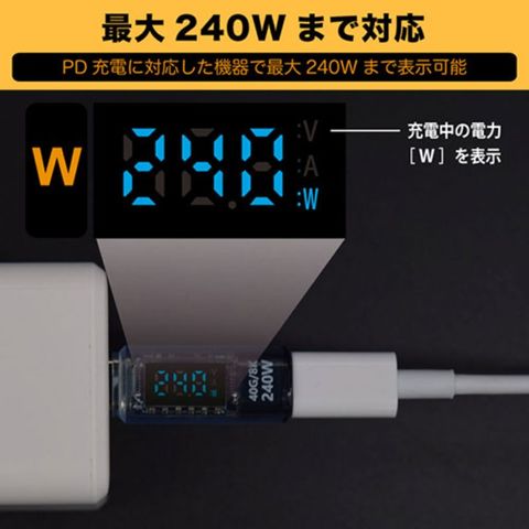 最大240Wまでの電力表示に対応しており、スマホやタブレットだけでなくノートパソコンの充電状況の確認にもご利用いただけます。