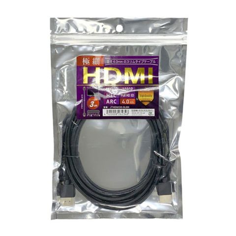 日本トラストテクノロジー スリムHDMIケーブル 極細・取り回しに便利 4K/30P対応 3.0m JTHDMI30-SLBK 【同梱不可】[▲][AS]